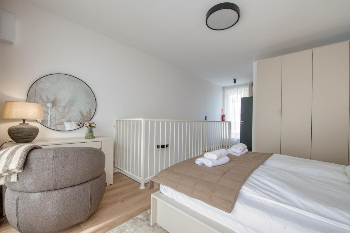 Apartament dwupoziomowy. This apartment features 1 living room, 1 separate bedroom and 2 bathrooms with a walk-in shower and free toiletries. In the well-fitted kitchenette, guests will find a stovetop, a refrigerator, a dishwasher and kitchenware. Boasting a terrace with garden views, this apartment also features a washing machine and a flat-screen TV. The unit has 3 beds. Powierzchnia pokoju ok.: 56 mkw. ;